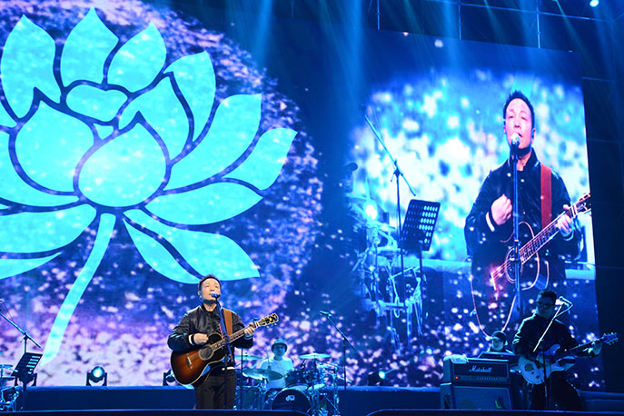2019年1月6日晚,備受矚目的“萬光城建23周年業(yè)主答謝晚會”在煙臺市體育館正式啟幕,公益演出現(xiàn)場人氣爆滿,座無虛席,來自國內(nèi)外的眾多知名樂隊、中國好聲音歌手及煙臺本土藝人輪番獻(xiàn)藝,贏得了觀眾的陣陣掌聲;國內(nèi)搖滾表演藝術(shù)家許巍及原班音樂團隊獻(xiàn)唱《曾經(jīng)的你》、《漫步》、《藍(lán)蓮花》等多首經(jīng)典歌曲,令現(xiàn)場歌迷大呼過癮。將晚會氣氛不斷推向高潮,為5000名煙臺市民帶來了一場音樂的視聽盛宴。