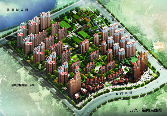 萬光福園位于煙臺市萊山區(qū)鳳凰山水庫南岸,規(guī)劃總建筑面積65.46萬平方米,綠地率41%,居住戶數(shù)3330戶,停車位6001輛,各類建筑近50棟,配套80米寬度商業(yè)步行街及中心城市廣場,為萬光城建在萊山中心區(qū)傾力打造的高端組團(tuán)水景大盤。