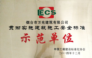 榮譽(yù),是對(duì)努力的最好嘉獎(jiǎng)。萬光建筑有限公司,先后榮獲了中國工程建設(shè)標(biāo)準(zhǔn)化協(xié)會(huì)頒發(fā)的“貫徹實(shí)施建筑施工安全標(biāo)準(zhǔn)示范單位”、“煙臺(tái)市建筑行業(yè)20強(qiáng)企業(yè)”、“煙臺(tái)市建設(shè)工程質(zhì)量安全管理優(yōu)秀企業(yè)”、“煙臺(tái)市建設(shè)工程質(zhì)量安全管理先進(jìn)企業(yè)”、“萊山區(qū)質(zhì)量管理先進(jìn)單位”等大批榮譽(yù)稱號(hào),公司所承建項(xiàng)目連續(xù)五年被評(píng)為“市級(jí)文明工地”、“市級(jí)優(yōu)質(zhì)結(jié)構(gòu)獎(jiǎng)”,工程安全達(dá)標(biāo)率100%。